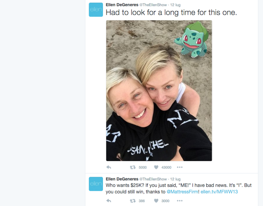 È uscito a luglio ed è già mania collettiva: perché Pokemon Go, il nuovo gioco che grazie alla realtà aumentata e alla geolocalizzazione permette di catturare Pokemon (virtuali) nel mondo reale, fotografandoli con il proprio smartphone (munito dell’apposita app), ha conquistato persino gli insospettabili, da Ellen De Generes a Aldo, Giovanni e Giacomo, come potete vedere nella nostra gallery. Il Central Park di New York è stato addirittura teatro di scene di puro delirio: una nutrita folla di giocatori è partita in caccia del raro Pokemon Vaporeon, tra urti, confusione e ressa.