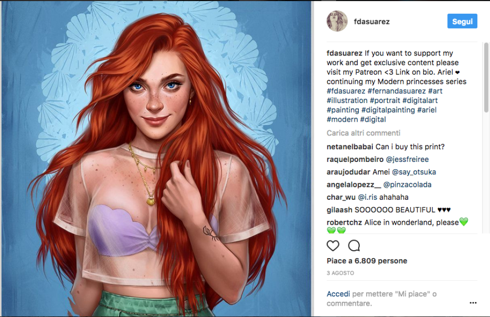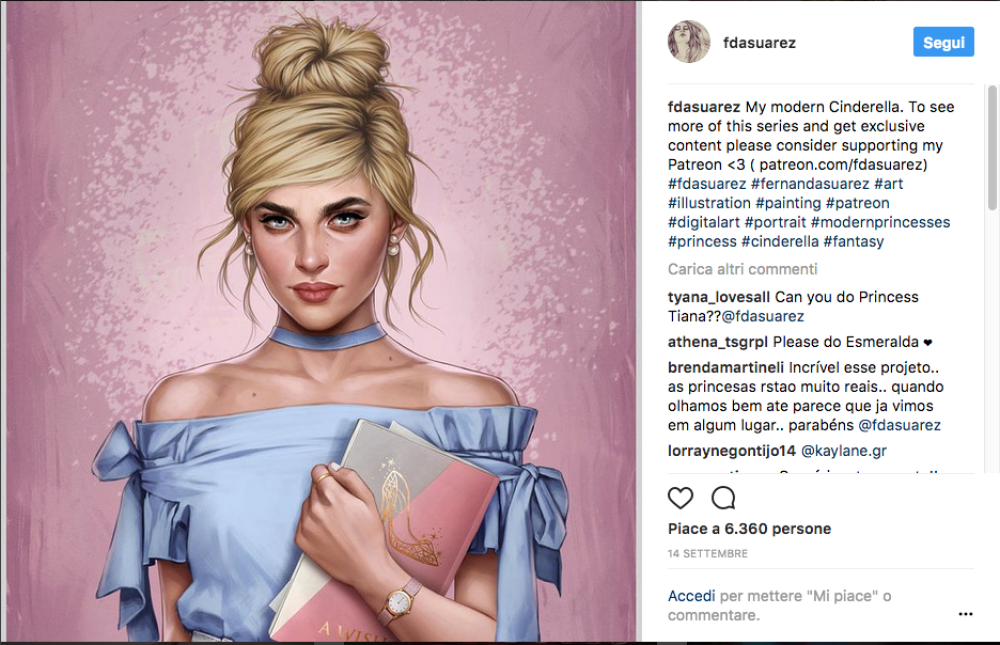 Fernanda Suarez è un’artista cilena con un debole (come molte altre persone) per le Principesse Disney. Cenerentola, Biancaneve, Bella, Ariel… Fernanda ha deciso però di provare a immaginare le sue eroine dando loro un tocco più moderno, insomma facendone ragazze di oggi. I risultati? Davvero incredibili. Come potete vedere in questa gallery…