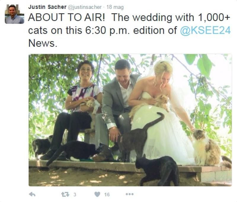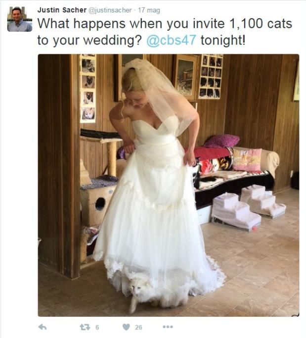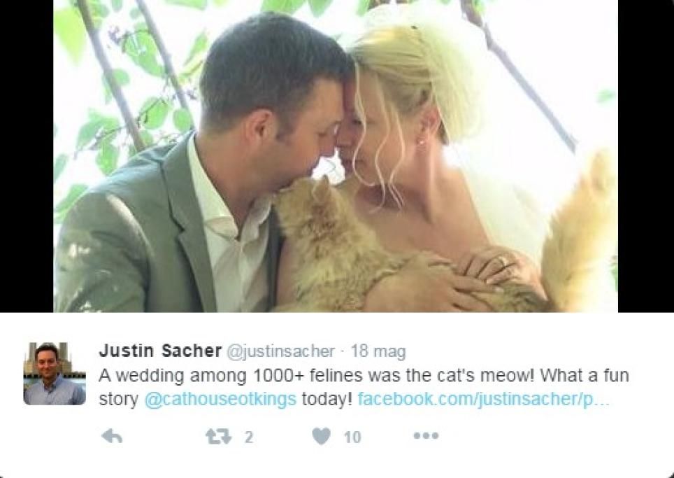 Una coppia canadese ha deciso di celebrare il proprio amore per i gatti nel giorno più speciale della loro vita, sposandosi al Cat House on the Kings, il gattile più grande della California, in presenza di ben 1110 mici. Una scelta che deve aver divertito non poco il fotografo ufficiale.