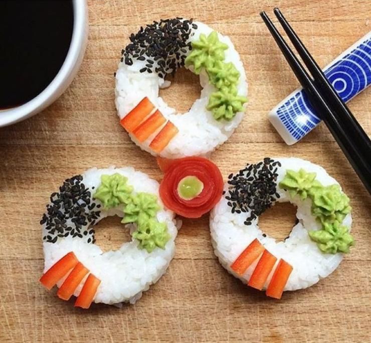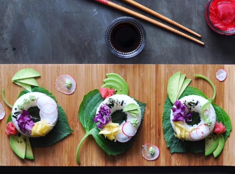 Se il sushi è una religione, i sushi donut sono i suoi nuovi feticci: la ciambella, preparata con riso sushi e olio di cocco, è decorata con sesamo nero, zenzero, wasabi, anacardi mayo e avocado. Ma in realtà potete metterci quello che più vi piace.