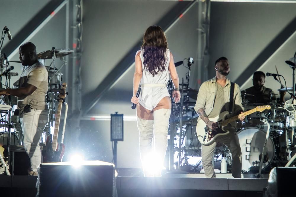 La tappa milanese dell’Anti World Tour di Rihanna, il 13 luglio, è stata salutata da un violento acquazzone, che ha fatto persino temere per la cancellazione dello spettacolo. Il temuto annullamento non si è verificato, ma il live dell’artista è iniziato con circa un’ora di ritardo, tra l’impazienza e qualche fischio degli spettatori spazientiti. E’ così saltata una parte del concerto e a essere sacrificate sono state canzoni molto amate e attese, come “Fourfiveseconds” e “Kiss It Better”. Un’ora e mezzo di show (che doveva concludersi, tassativamente, verso le 23.30) al quale hanno assistito anche Tiziano Ferro, Marco Mengoni e Benji e Fede.