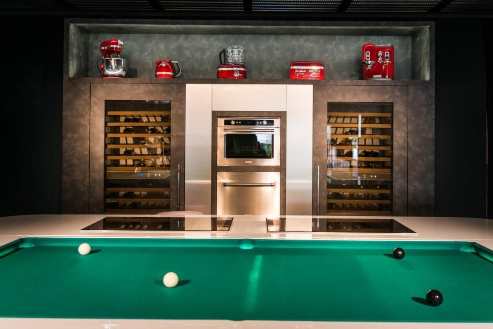 Il simbolismo della Showcoking si arricchisce anche della reinterpretazione del biliardo, immaginato come luogo dove ritrovare il piacere della socializzazione, della condivisione e della convivialità. Infatti attorno al tavolo si trovano nove sedute a disposizione dei “commensali-giocatori”, pronti a unire il piacere comune del gioco a quello della preparazione e della degustazione del cibo.