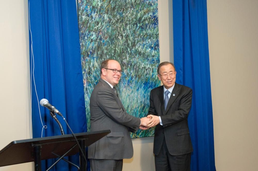 S.A.S. il Principe Alberto II e S.E.M. BAn Ki-Moon hanno svelato il dono del Principato per l’ONU, un dipinto dell’artista monegasco Claude Rosrticher, commissionato per il ventesimo anniversario dell’ammissione di Monaco all’ONU. La visita si è conclusa con il Gala dell’Associazione dei Corrispondenti presso le Nazioni Unite, il cui Segretario Generale ha consegnato a S.A.S. il Principe Alberto II il premio Global Advocate of the year, per il suo impegno a favore dello sviluppo sostenibile.