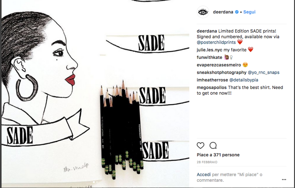 Ma Sade non era affatto scomparsa. Perché, come afferma anche un articolo del prestigioso quotidiano The Guardian, il suo sound è ormai un classico, capace di sfidare il tempo. E la riprova sono anche gli omaggi che numerosi artisti hanno reso nel tempo a Sade. Da quelli musicali, come il remix di Jay-Z di “Moon And The Sky” a quelli iconografici, come le T-shirt griffate di  Ted’s Draws e Deerdana o la graffiti art di Dirt Cobain (per non parlare di Drake, che si è fatto tatuare ben due ritratti di Sade sul corpo). Fino al tributo di Nicky Minaji. Che sulla copertina del New York Times ha stravolto completamente il suo stile estroverso. Per adottare il look chic e inconfondibile di Sade.