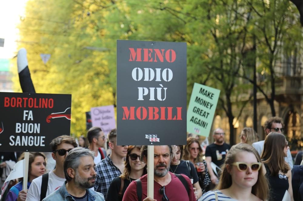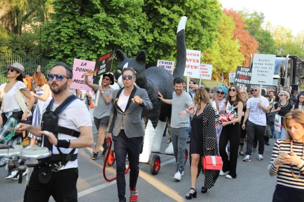 Oltre 3.000 persone si sono unite a un corteo insieme ai brand Gufram, Toiletpaper, Esselunga, Heineken, Saviola, Hospitality Truck, Parco1923, gli studenti dello IED e tanti designer partendo da Piazza Castello, per arrivare in Piazza Affari dove ha avuto luogo l’after party, con musica dall’enorme track che ha guidato la marcia.