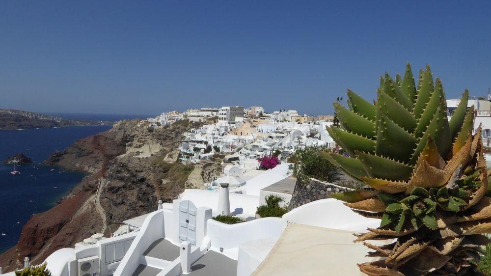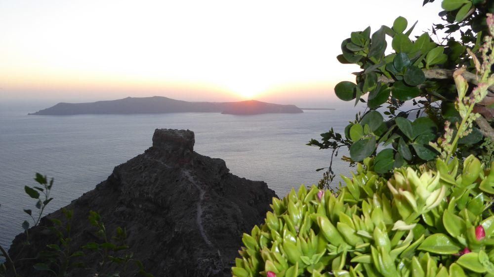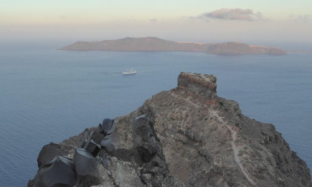 Eppure Santorini è riuscita a creare un mito intorno al calare del sole in mare. La gente affolla i caffè e i ristoranti, le piazzette e le stradine di Fira, Imerovigli e Oia per stare a vedere il tramonto, come se aspettassero uno spettacolo di fuochi di artificio. E invece è il sole che se ne va, ed è lo spettacolo più bello del mondo ma che si ripete dall’alba dei tempi. Il mito ormai è lanciato, il tramonto in Caldera è un must to see, possibilmente in condizioni romantiche e appartate. Io avevo scelto una camera con terrazzino panoramico e mi ero portato del buon rosè preso in aereoporto.