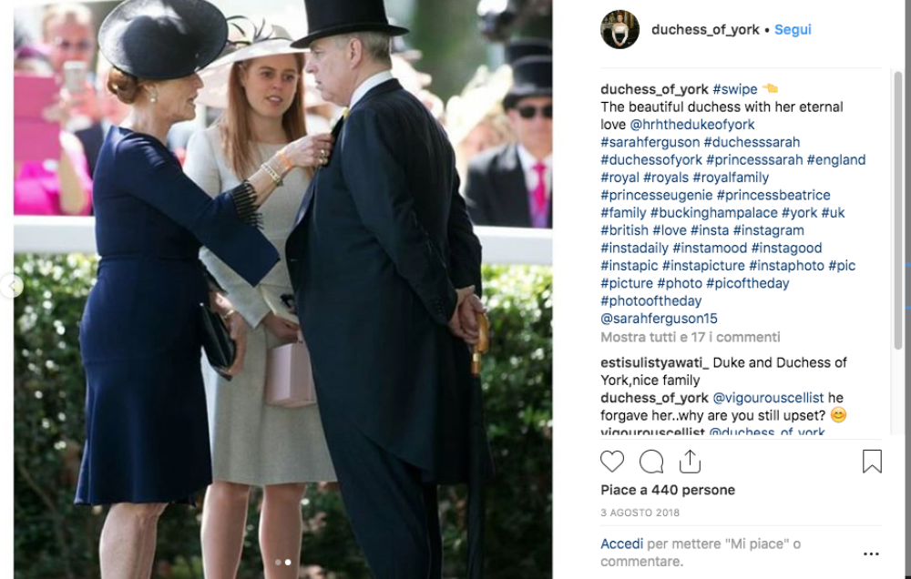 Un ritorno di fiamma tra l’esuberante Sarah “la rossa” e il fratello minore del Principe Carlo? Chi sa. Ve detto però che la coppia è sempre rimasta in ottimi rapporti. Sarah e il Principe Andrea vanno spesso in vacanza insieme, hanno uno chalet a Verbier, in Svizzera, e si sostengono a vicenda.
