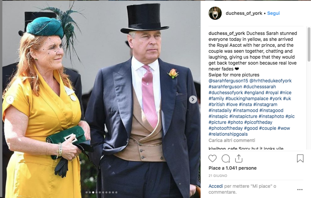 La stampa britannica, sul tema delle nuove nozze, ha già prodotto degli indizi. Il magazine Hello! ha pubblicato un’intervista in cui Sarah Ferguson ammette che «io e Andrea collaboriamo armoniosamente e cerchiamo di essere buoni genitori. Siamo più che amici». Ad aprile, il giornalista Dan Wootton aveva dichiarato, sul canale tv ITV, che Sarah e il Principe Andrea erano «friends with benefits», amici con vantaggi. A nessuno poi è sfuggita la complicità tra gli ex partner ad Ascot, nel giugno scorso.