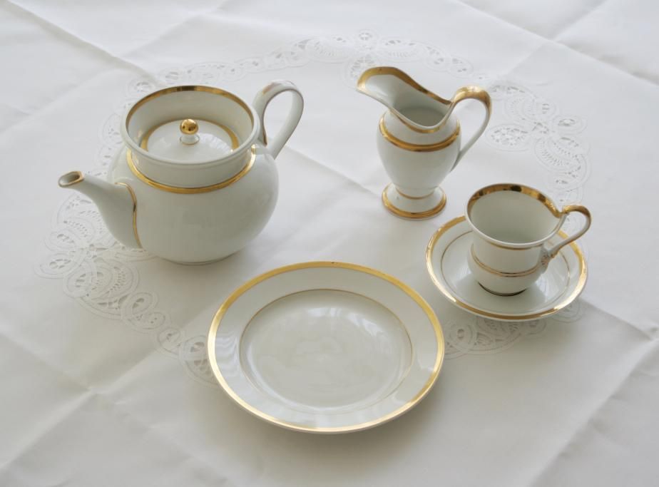 Un set completo di stoviglie. Per cene e pranzi: 6 piatti fondi, 6 piatti piani, insalatiera, zuppiera, 6 bicchieri da vino, 6 bicchieri per l’acqua.