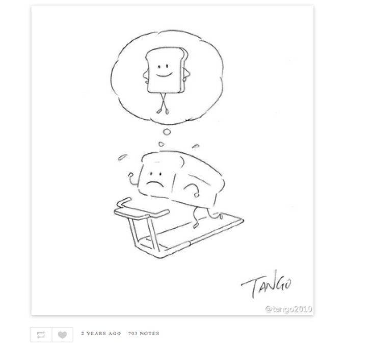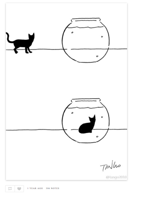 Si firma Shangahi Tango e crea vignette diventate ormai di culto in rete. I suoi disegni raccontano un mondo surreale, bizzarro, molto ironico e strappano sempre un sorriso divertito. Vi proponiamo una gallery con alcune delle sue creazioni. Se volete vederne altre, potete scoprirle sul suo account tumblr cliccando qui.
