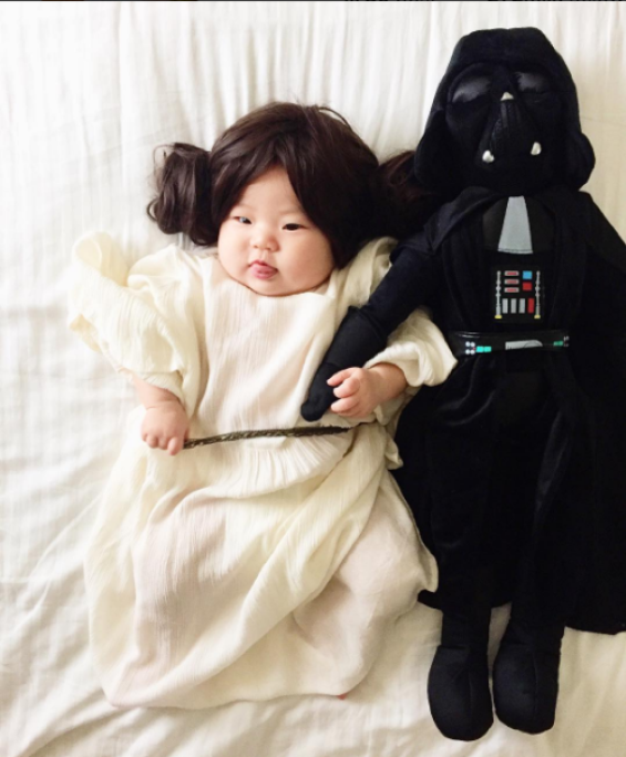 Approfittando del sonno profondo della bimba, Laura ha iniziato per gioco a mascherarla con abiti e oggettistica dai riferimenti “pop”. Jon Snow, Pikachu e Beyoncè tra i travestimenti prediletti dalla mamma – fotografa, ma anche cult come la saga Star Wars.