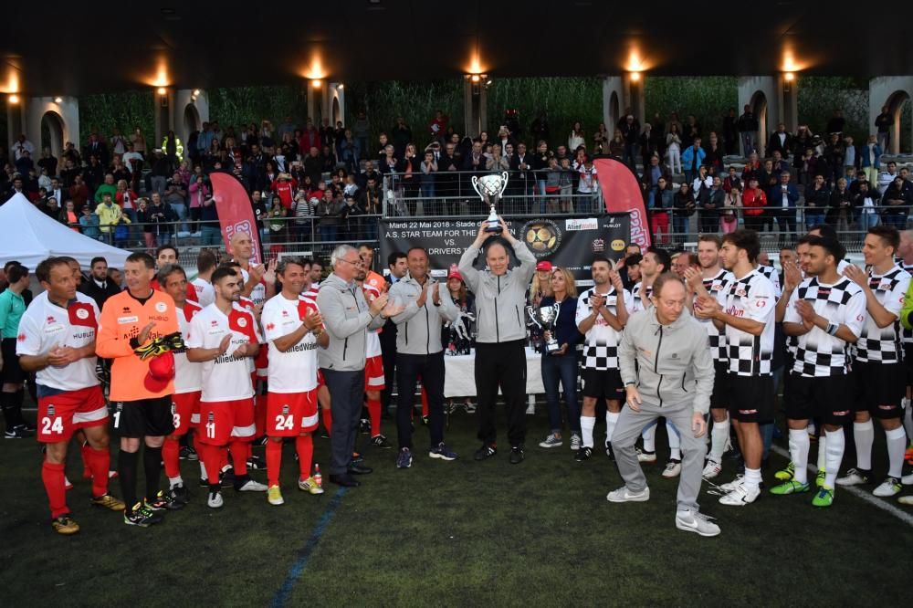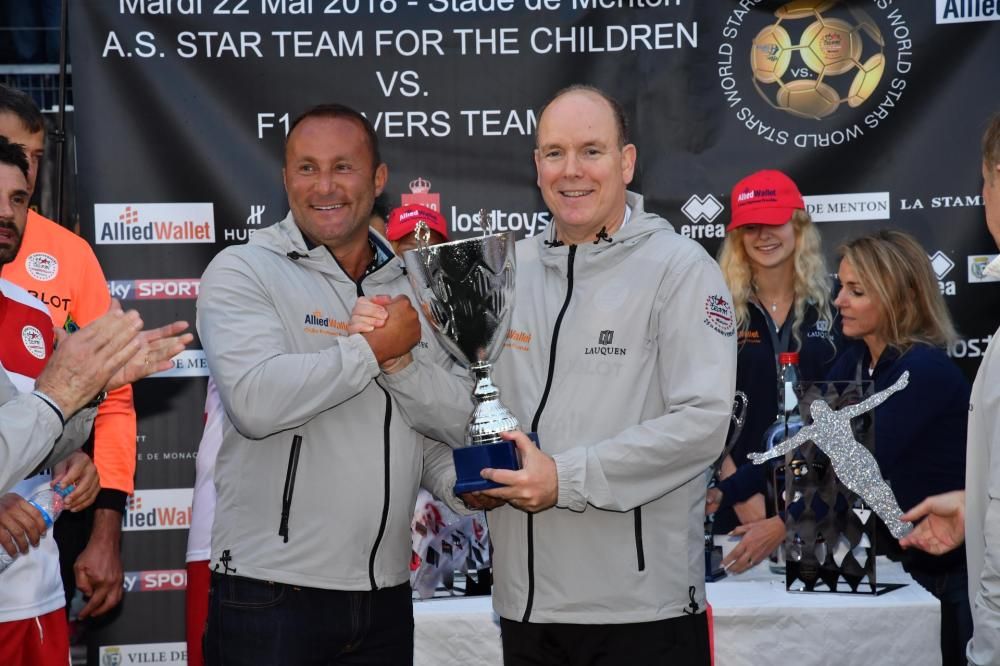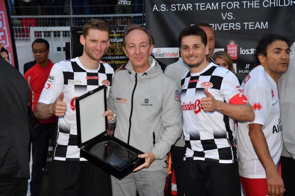 MENTONE. E’ terminata 2 a 1 a favore dello Star Team Monaco la 26° partita di calcio con i Piloti (Formula 1 Drivers Team). E’ stato un bellissimo pomeriggio di sport e di solidarietà, con lo stadio di Mentone pieno di gente, tanto tifo, applausi, autografi e foto.