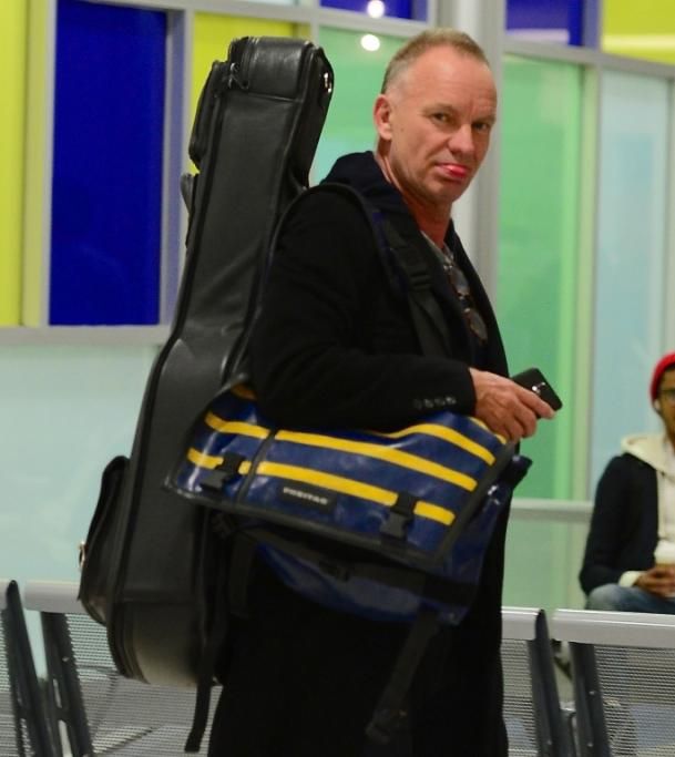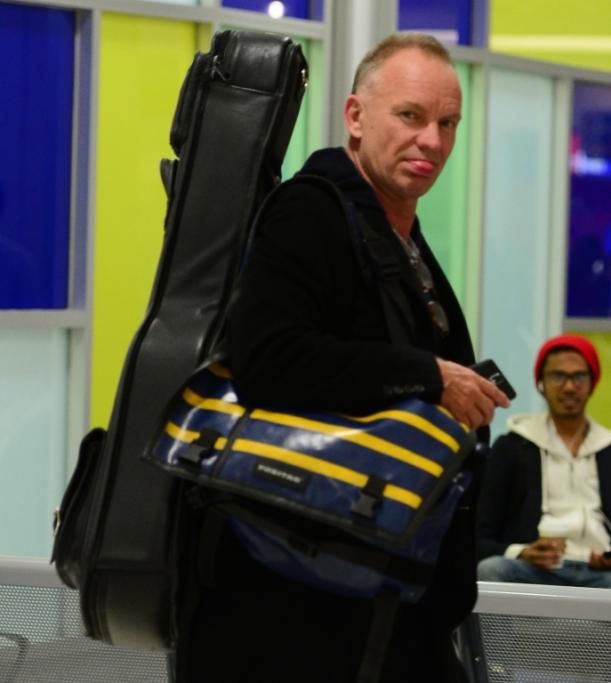 L’artista festeggia con un grande concerto a New York i 25 anni dell’organizzazione Rainforest Fund, creata con la moglie Trudie Styler. Sorpreso dai fotografi all’aeroporto JFK, scherza con loro… mostrando la lingua (Foto Splash News)
