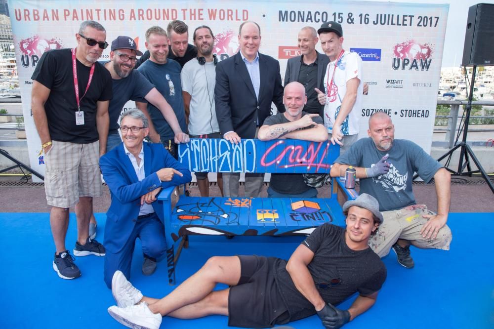 Successo di pubblico e soddisfazione degli organizzatori e del Principato per la prima edizione di UPAW Monaco (Urban Painting Around The World), conclusasi domenica sera 16 luglio. La Street Art a Monte Carlo è piaciuta e anche il Principe Alberto II ha lasciato la sua “tag” durante la visita ai nove artisti che hanno lavorato su tele da 6×2 mt. sul tema della protezione degli oceani.