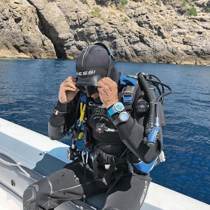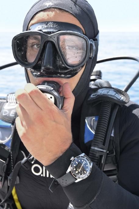 Che sia in apnea, con l’autorespiratore ad aria o a ossigeno, sono 21 anni che vivo intensamente il mare. Il «Sesto continente» o il «Mondo del silenzio», come lo definirono negli anni 50 i primi documentari sulla subacquea, è un’altra dimensione. È unico perché prima lo contempli, poi ti ci immergi. La fisica, l’ostentazione, l’apparenza che regnano a terra vengono sconvolte quando si fa la capovolta e si pinneggia verso il fondo. La legge di Archimede vige e devi adattarti, acquisendo quella che Luigi Ferraro, incursore e padre della subacquea, battezzò acquatilità. Giù devi essere acquatile, negli abissi impera la verità. Una volta immerso conta solo la testa. E il tempo. Se infatti i suoni, la gravità e gli scambi gassosi a livello polmonare e sanguigno vengono alterati dalla pressione, il tempo non viene distorto. Sarebbe bello che rallentasse proporzionalmente al battito cardiaco, per poter stare sotto delle eternità. Eppure scorre inesorabile, determinando tempistiche che vanno rispettate altrimenti son dolori. Ecco perché a un subacqueo non può mancare un segnatempo al polso. Ormai la servoassistenza post-moderna lo sta soppiantando con l’impersonale computer, che riassume orologio, profondimetro, tabella di decompressione, termometro. Pensa lui per te, sostituendosi letteralmente al cervello dell’uomo. Rimane comunque uno strumento che garantisce, se portato da chi sa cosa sta facendo, una buona dose di sicurezza, ma il suo quadrante digitale rimane freddo e non arricchisce certo l’immersione di estetica. Dunque, ci sono ancora dei subacquei, pochissimi a dire il vero, che amano l’orologio meccanico con la ghiera girevole per segnare il tempo d’immersione e la tabella di decompressione infilata nella tasca del Gav (giubbetto assetto variabile) o in cintura se puristi che si immergono con il solo schienalino per la bombola.