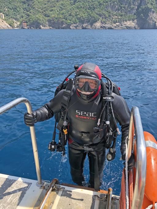 Sei invece gli sperimentatori, tra cui chi scrive: il direttore di Arbiter Franz Botré, soprannominato in gioventù L’uomo di Atlantide, con oltre 1.000 immersioni in tutto il mondo, il titolare del centro immersioni che ci ha accompagnati Andrea Galliadi, istruttore dal 1998 con più di 3.500 tuffi all’attivo nonché autore del libro Immergersi a Portofino (Azienda grafica Busco, 2003), il suo braccio destro Marco Bove, che dal 2010 al 2017 ha lavorato a bordo della motonave Don Questo nel Mar Rosso sudanese durante la stagione invernale e che conta oltre 6mila immersioni, la biologa marina Paola Bearzi, che curava le vasche degli squali nell’Acquario di Genova prima di trasferirsi nel ’96 in Indonesia per aprire un dive resort a Manado, il Mapia resort, ora tornata in Italia dove continua a immergersi per passione, e infine Giosuè Sannino, direttore didattico di Handicapped scuba association Italia, agenzia che brevetta persone con disabilità. Quali occhi migliori dei loro per valutare questi capolavori di meccanica, in base a visibilità, robustezza, comodità, funzionalità, estetica?