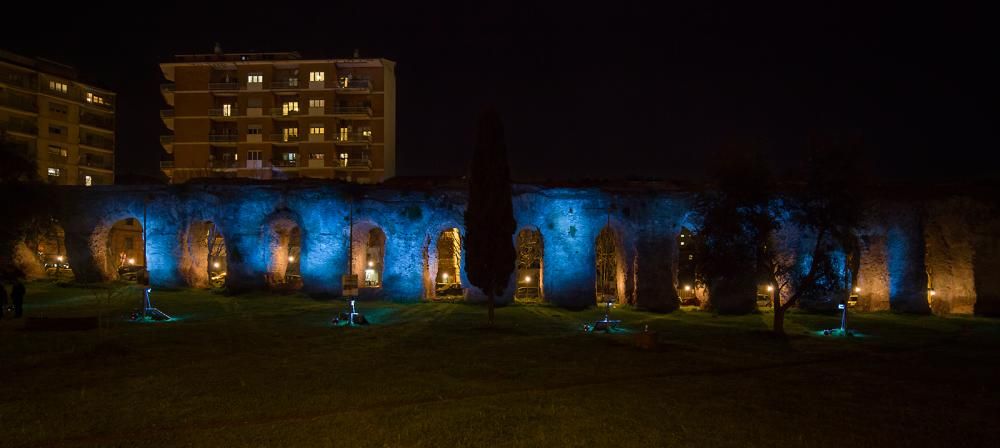 Tra le esperienze da non perdere, l’installazione luminosa Distorsione, capace di modificare la percezione dei luoghi osservati abitualmente, del duo La mia paura è bianca; Ether’ò, Simone Palma e Diego Labonia, che proietta immagini su uno specchio d’acqua luminoso; Radiolaser, di RGB, che proietta raggi laser luminosi lungo le arcate le mura dell’acquedotto Alessandrino; Photosynthesi, intervento artistico basato su una tecnica innovativa che utilizza un estratto a base di clorofilla come pigmento temporaneo per dipingere il giardino spontaneo dell’Arena Aurora.