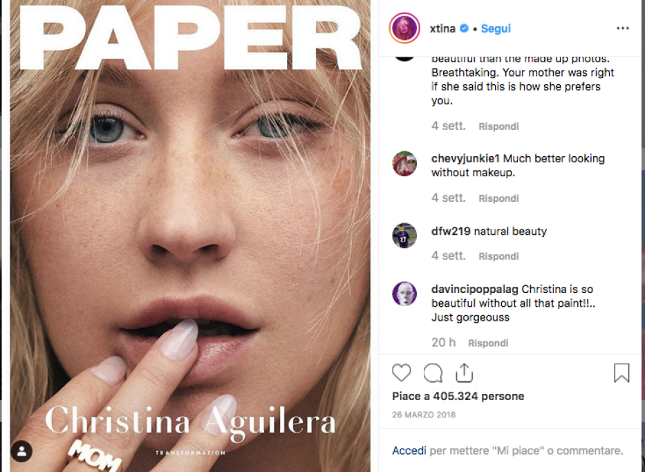 La prima è stata Alicia Keys. Che ha deciso di dire no al make up, persino nelle occasioni più ufficiali. Poi è venuta Christina Aguilera, che si è mostrata al naturale sulla copertina di un magazine. E pian piano, anche le altre celebrità si sono lasciate convincere dal look acqua e sapone. Tanto da mostrarsi, nelle loro pagine Instagram, spesso senza nemmeno una traccia di make up. E per di più sorridenti e rilassate (nelle foto con il make up prevalgono invece le espressioni accigliate o artefatte).