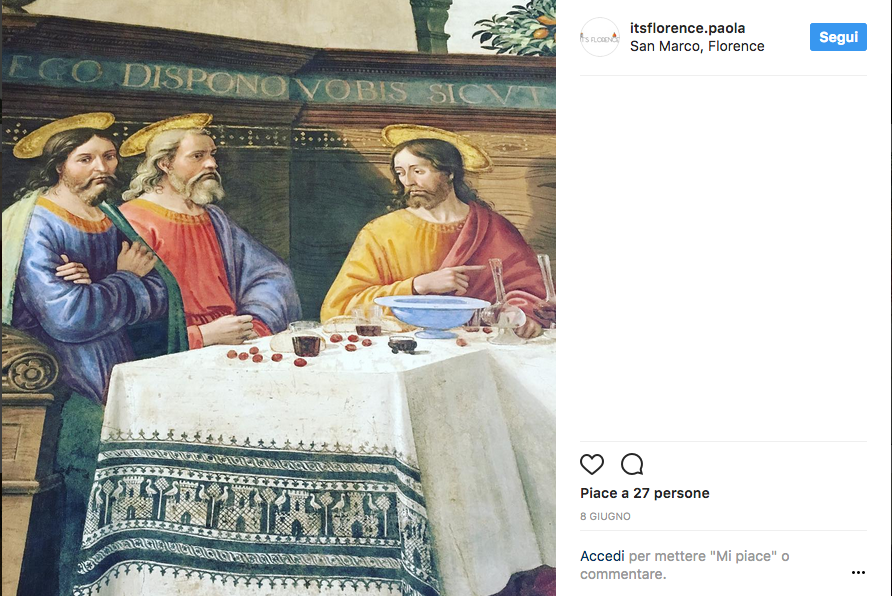 Se nell’affresco di Antonio Baschenis a Santo Stefano a Carisolo (Trento) si mangiano gamberi di fiume, in quello di Domenico Ghirlandaio nel convento di San Marco a Firenze ci sono pane, formaggio e ciliegie (queste ultime alludono al sangue versato da Cristo). Tintoretto, nella Chiesa di San Giorgio Maggiore a Venezia, dipinge anche una torta. E Leonardo Da Vinci? In tavola porta anche un’anguilla, piatto assai apprezzato ai sui tempi. Ma cosa poteva esserci davvero, sulla tavola dell’ultima cena? Dal momento a cena si svolse durante la Pasqua ebraica, è probabile che i cibi fossero i cibi tradizionali della ricorrenza: erbe amare, pane azzimo e dolci di frutta secca, vino rosso diluito con acqua.
