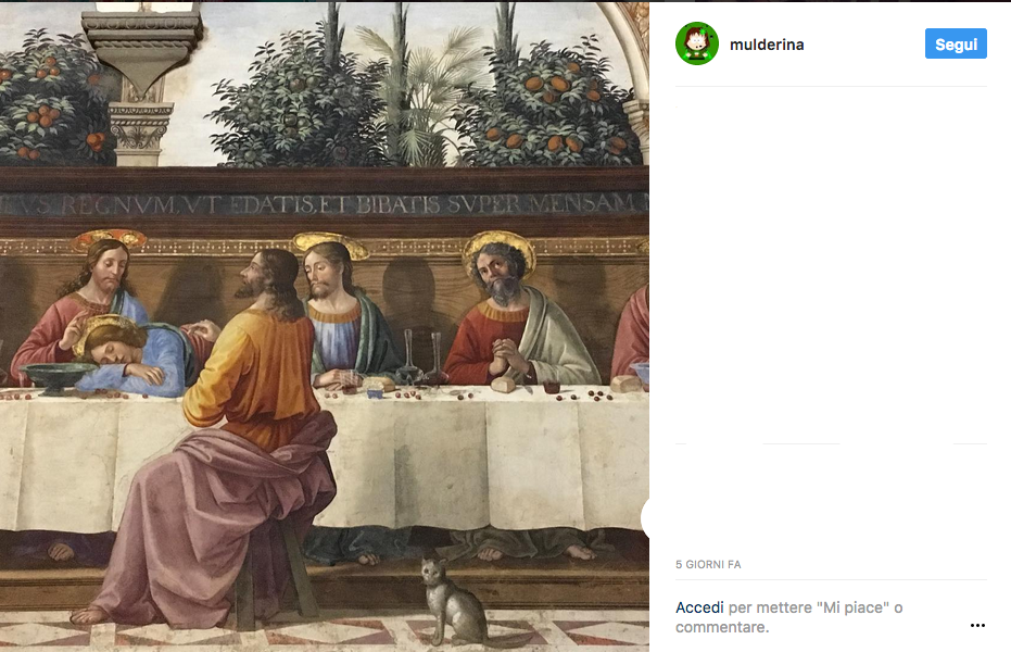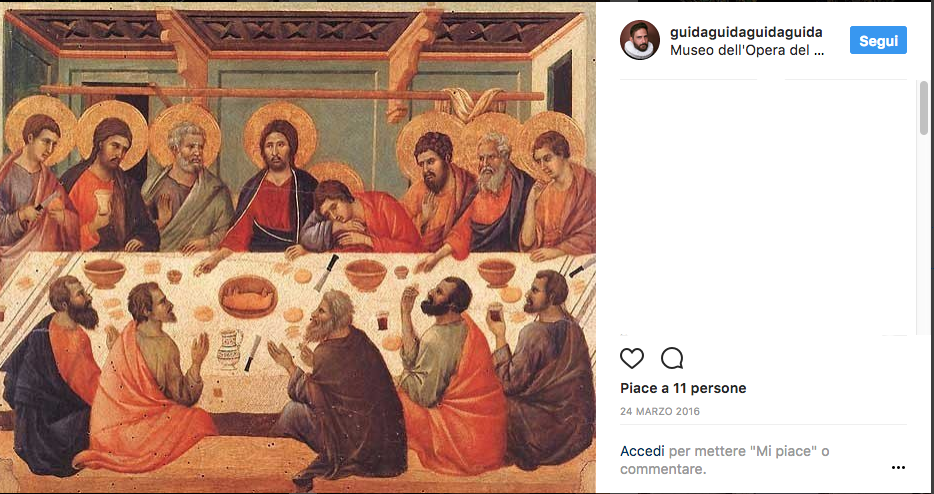 A Berlino, nel Polittico della Passione dipinto del Maestro del Libro di Casa, il piatto in tavola è l’agnello (altro simbolo del sacrificio di Cristo). Nel Museo dell’Opera del Duomo a Siena è possibile ammirare un dipinto di Duccio di Buoninsegna in cui l’ultima cena è a base di maialino, piatto diffuso nel periodo medievale, in cui fu realizzato il dipinto, ma non certo nella Palestina dei tempi di Cristo, dove non era concesso mangiarlo.