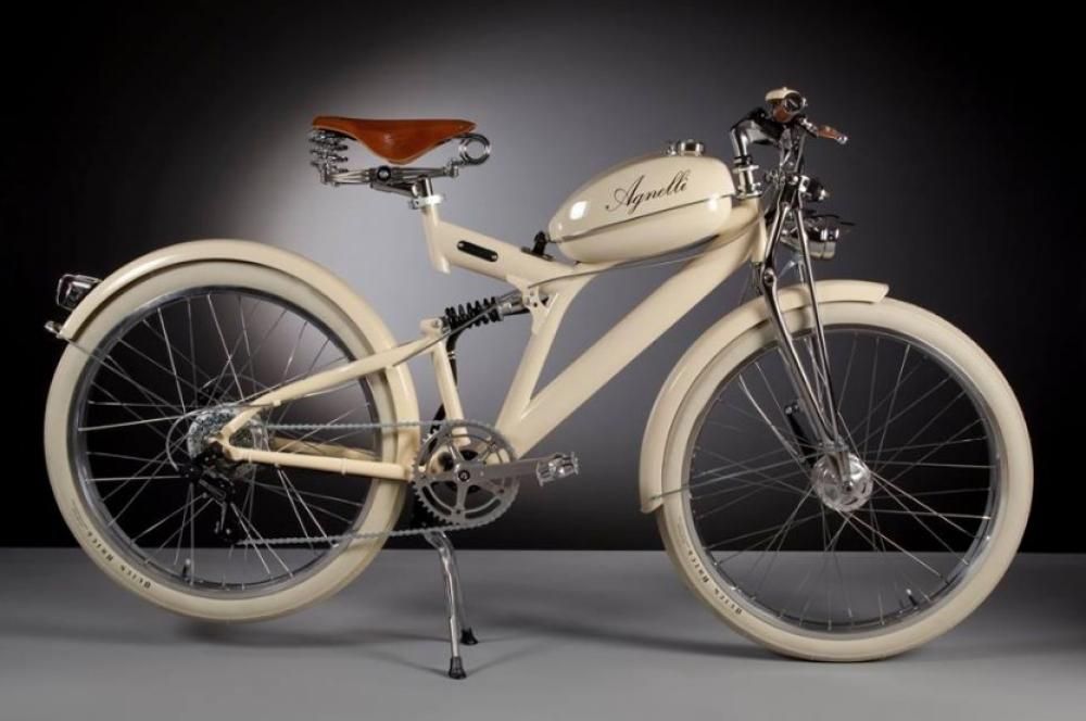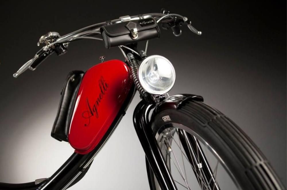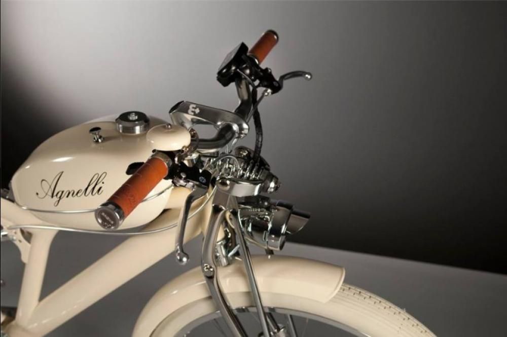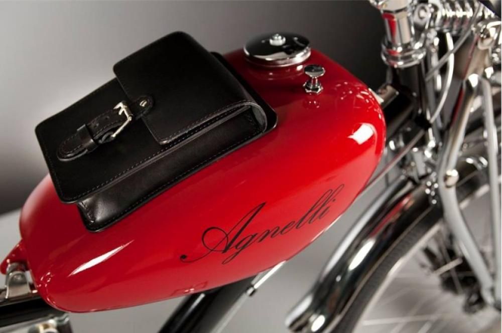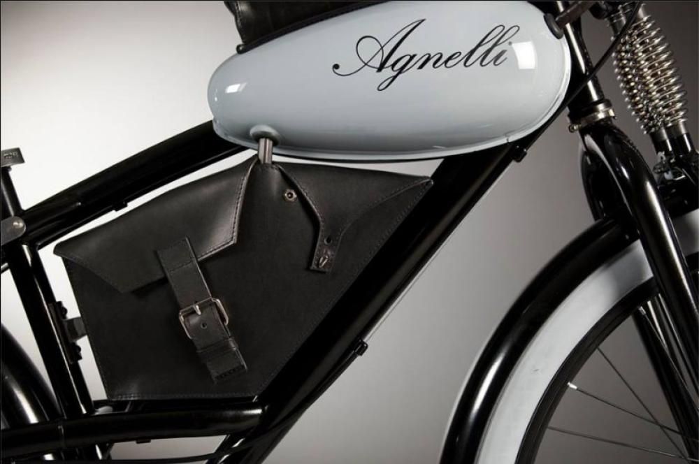 L’artigiano di Abbiategrasso, in provincia di Milano, ha ripensato il concetto di bicicletta artigianale prendendo a modello quegli ibridi tra motociclette e biciclette diffusissimi dopo la Seconda Guerra Mondiale. Uno su tutti? Il Guizzino 65, dal quale il signor Agnelli recupera spesso il serbatoio, che diventa un elegantissimo contenitore per la batteria.