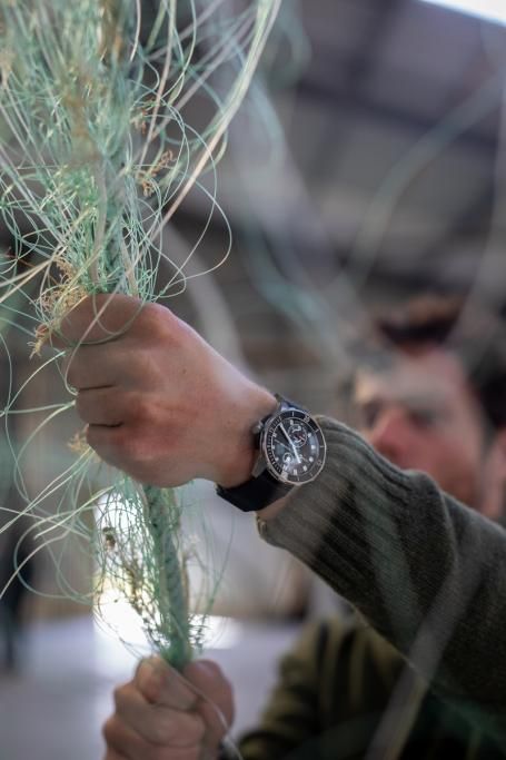 Per la decorazione della cassa, del fondello e della lunetta del DIVER NET, Ulysse Nardin si è affidata a tre giovani designer bretoni che hanno creato il primo hub del riciclaggio delle reti da pesca in Francia. La loro FIL & FAB recupera le reti non più in uso dai porti e le trasforma in pellet di poliammide, materia prima altamente resistente all’attrito. Questi partner hanno un background di design industriale e di trasformazione, con una reale sensibilità alla sostenibilità ambientale.