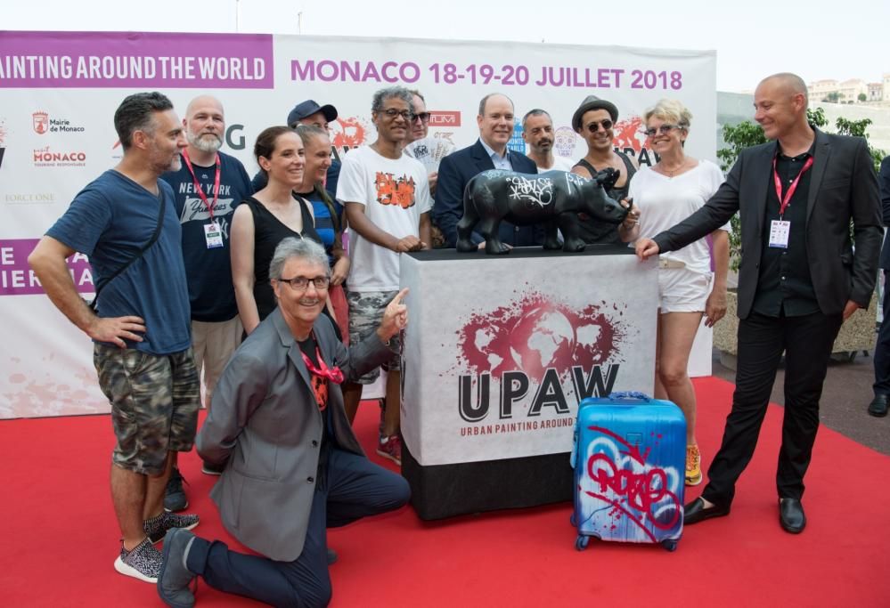 Molto attesa la visita del Principe Alberto II giovedì 19 luglio, che nel pomeriggio ha incontrato gli artisti e come lo scorso anno ha voluto lasciare il proprio “tag” personale. Foto ricordo e un omaggio da parte dell’organizzazione di UPAW Monaco, un rinoceronte di resina personalizzato dai 10 artisti. Un regalo che preannuncia anche il tema della prossima edizione dell’evento nel 2019: “Animali in estinzione”.
