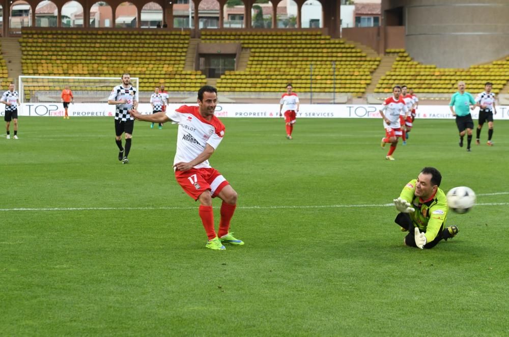 Calorosa l’accoglienza degli spettatori, tutto trasmesso in diretta da Sky Sport F1 HD. Toccante il minuto di silenzio ed il lungo applauso per ricordare il pilota campione del mondo, Nicky Hayden, che se ne è andato troppo presto poche ore prima. Inizia la partita, al 35° Pereiro Da Silva dello Star Team mette in rete. Il Principe Alberto II è in campo per venti minuti, baluardo difensivo nel ruolo che predilige: terzino destro. Il raddoppio arriva al 4’ del secondo tempo per merito di Ludovic Giuly, grande ex del Monaco e della Nazionale francese. Reagiscono i piloti e con Maro Engel accorciano le distanze al 15’ della ripresa. Poi la festa con le premiazioni e il party serale. Qualche ora di riposo e poi piloti in pista a Monte Carlo. C’è un Gran Premio da correre! (foto Jean-Marc Follete)