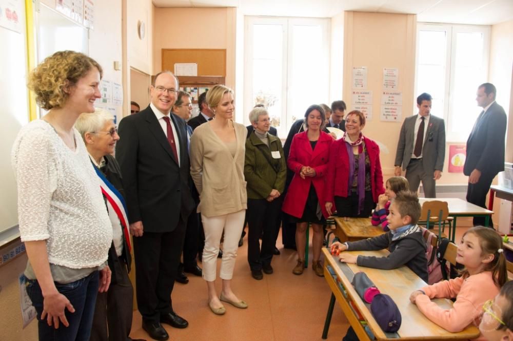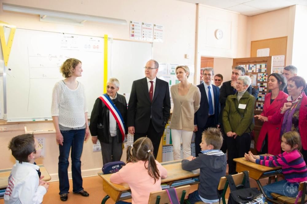 Le LL.AA. SS. il Principe Alberto e la Principessa Charlene in visita alla scuola Nelson Mandela di Carlat (foto Palais Princier)