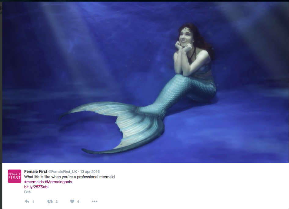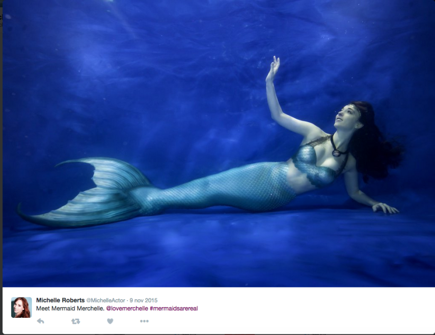 Michelle Roberts fin da piccola era ossessionata dalla “Sirenetta” di Walt Disney. Sognava di vivere negli abissi marini e avere squame e una lunga coda. A otto anni ne ricevette anche una per Natale, pazientemente confezionata dalla mamma e dalla nonna, e questo giorno segnò la svolta nella sua vita. Michelle decise di diventare una sirena. L’impresa, come è facile immaginare, non è affatto semplice: Michelle si iscrisse a corsi professionali per imparare a nuotare perfettamente e stare sott’acqua. Doti che, unite al suo talento nel ballo e nel canto, ne hanno fatto una perfetta sirena. La vera metamorfosi però accadde quando Michelle acquistò una tecnologica coda da sirena in silicone. Un prodigio del costo di oltre mille euro e dal notevole peso di oltre venti chili. Oggi Michelle è una sirena professionista: un lavoro che esiste davvero e che impegna altre ragazze (sono venti in Gran Bretagna, paese in cui vive la nostra eroina), amanti, come Michelle, dell’acqua e delle scaglie. Un mestiere che rende abbastanza, visto che Michelle ha lasciato la sua precedente occupazione è adesso è sirena a tempo pieno, impegnata in show e spettacoli con la compagnia che ha creato, Siren Serenade.