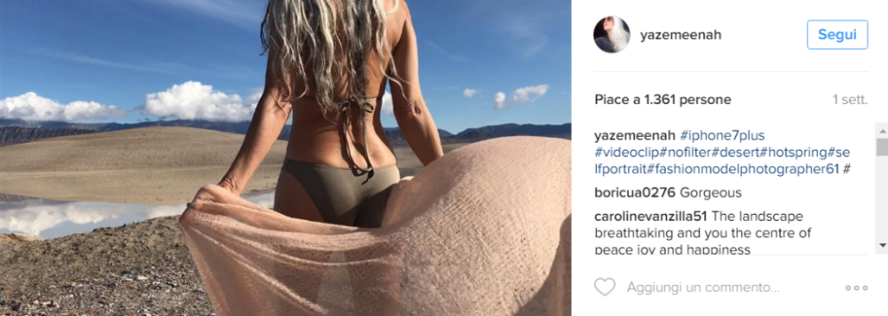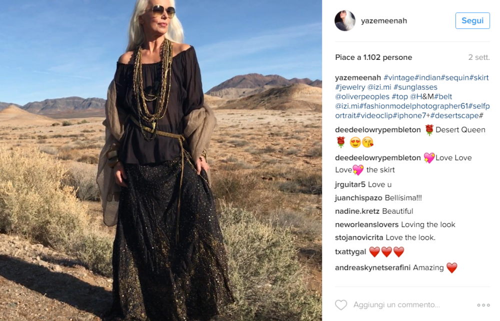 La confidenza con il proprio corpo non manca a Yazemeenah, che ha dichiarato di voler continuare a posare “fino alla fine della mia vita” e ha a lungo combattuto con i suoi agenti che tentavano di convincerla a nascondere la sua luminosa chioma bianca, ora diventata il suo marchio di fabbrica.