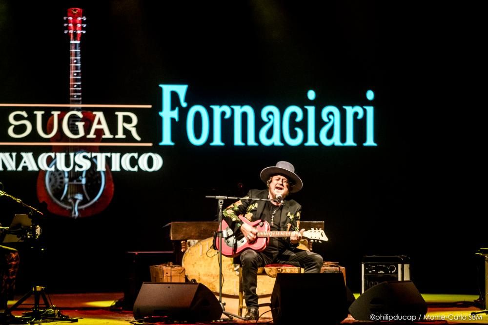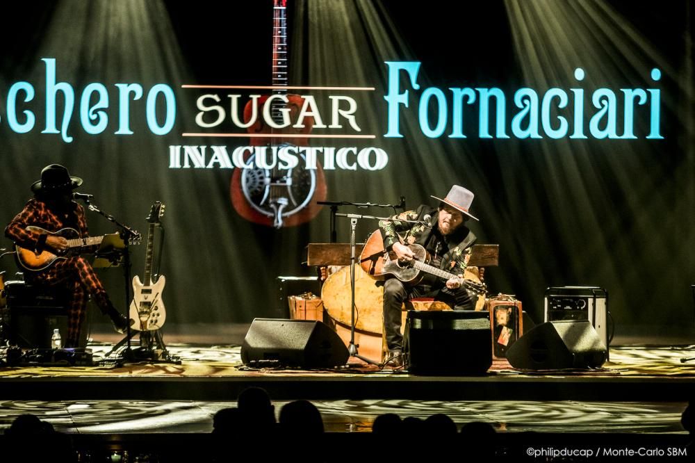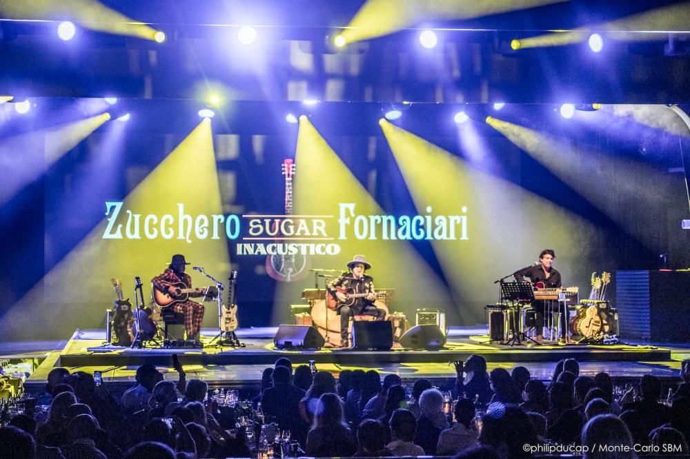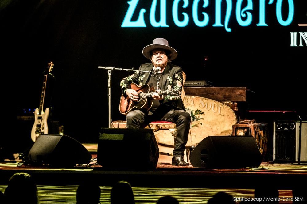 Nella Salle des Etoiles, il pubblico accoglie con un primo applauso l’entrata in scena di Zucchero, accompagnato da Kat Dyson originaria della Virginia e Doug Pettibone di New Orleans. Sono tre ed è il numero perfetto, con una serie di chitarre a disposizione di ognuno, oltre alla tastiera che ogni tanto servirà a Zucchero. Ce n’è abbastanza per accendere l’atmosfera dello Sporting Monte-Carlo e l’entusiasmo di chi è venuto ad ascoltarlo.