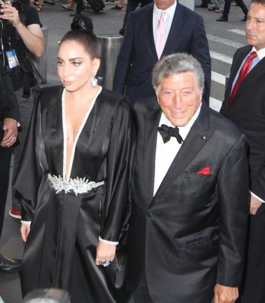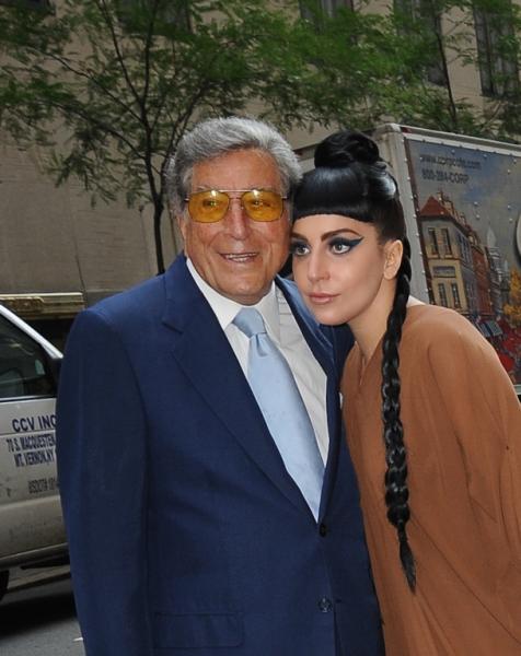 Finalmente una data d'uscita per la tanto annunciata collaborazione tra i due musicisti. L'album "Cheek to cheek", dedicato a celebri standard jazz, esce il 23 settembre. In foto, le due star festeggiano la fine delle registrazioni e l'annuncio della pubblicazione (foto Splash News)