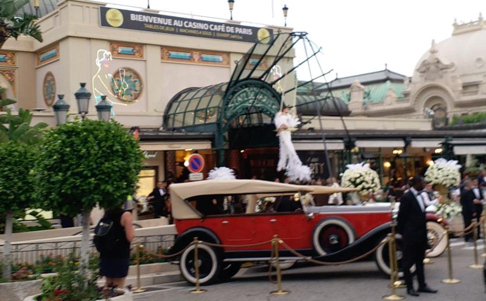 Sabato sera c'era una festa anni 30 al Caffè de Paris. Sulla piazza del casinò di Monte Carlo erano parcheggiate bellissime auto d'epoca della collezione del Principe. C'era una ragazza su un'altalena che dondolava con una lunga coda di piume di struzzo a 5 metri sopra l'ingresso. E poi, una volta entrato nell'atrio, devo ringraziare Sylvie Cristin della SBM che mi ha preso sottobraccio e mi ha fatto fare la passerella, in mezzo a ballerini e ballerine in costume anni 30. Mi sono sentito per un attimo il Grande Gatsby! C'era un'orchestrina che suonava electroswing e su uno schermo venivano proiettate immagini di Monte Carlo anni 20 e 30. Per una sera si sono celebrati i fasti des Annèes Folles...come li chiamano...gli anni folli. La grande crisi di Wall street non era ancora arrivata in Europa, ci si divertiva a più non posso, non c'era il proibizionismo a Monte Carlo e scorrevano fiumi di champagne. All'Hotel de Paris nel 1930 venne organizzato il Gran Ballo dell'Oro. Una arciduchessa russa, dice la leggenda, arrivò vestita solo di polvere d'oro appiccicata alla sua pelle nuda... Comunque seratona al Caffè de Paris! Non c'erano arciduchesse ma un sacco di belle donne e una magnifica acrobata serviva champagne appesa a testa in giù. Poi sono uscito, mi sono appoggiato ad una Delahye anni 30....e mi sono sentito Francis Scott Fitzgeral che sulla piazza del Casinò di Monte Carlo c'era stato negli anni 20... In Costa Azzurra aveva abitato con Zelda a Cap D'Antibes e a Villefranche e aveva tratto ispirazione per il suo romanzo "Tenera è la notte". Strani scherzi di fantasia di una notte di mezza estate...e dello champagne!