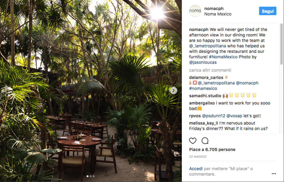 Accade però che il Noma vada ristrutturato. E allora Redzepi, in attesa che il locale sia aperto nuovamente, cosa fa, con tutto il suo staff? Va in Messico, a Tulum. Invece che stare a oziare, l'idea è quella di aprire un ristorante. Un ristorante pop up, temporaneo, che naturalmente diventa subito ambitissimo.