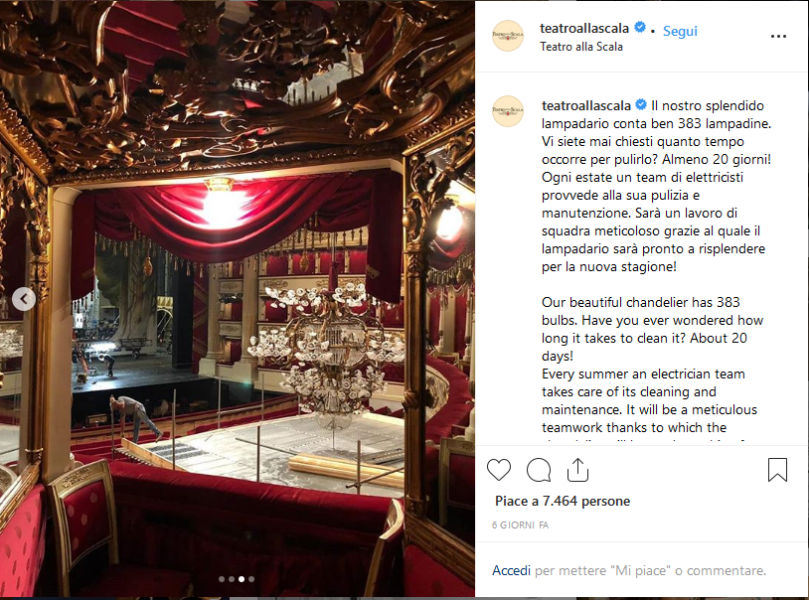 Teatro alla Scala: le incredibili pulizie del suo maestoso lampadario