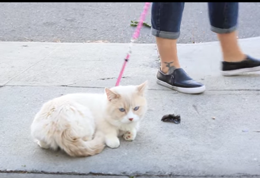 Quanti ne abbiamo visti: gatti rotondi come palle, beati nella loro pigrizia… Ma una sana passeggiata fa bene anche ai felini. E dunque, come vincere le ritrosie dei più sedentari? Con un “passeggiatore” personale, come mostra il divertente video pubblicato su BuzzFeed, in cui proprietari affannati cercano di convincere il proprio felino a camminare al guinzaglio senza riuscirci…