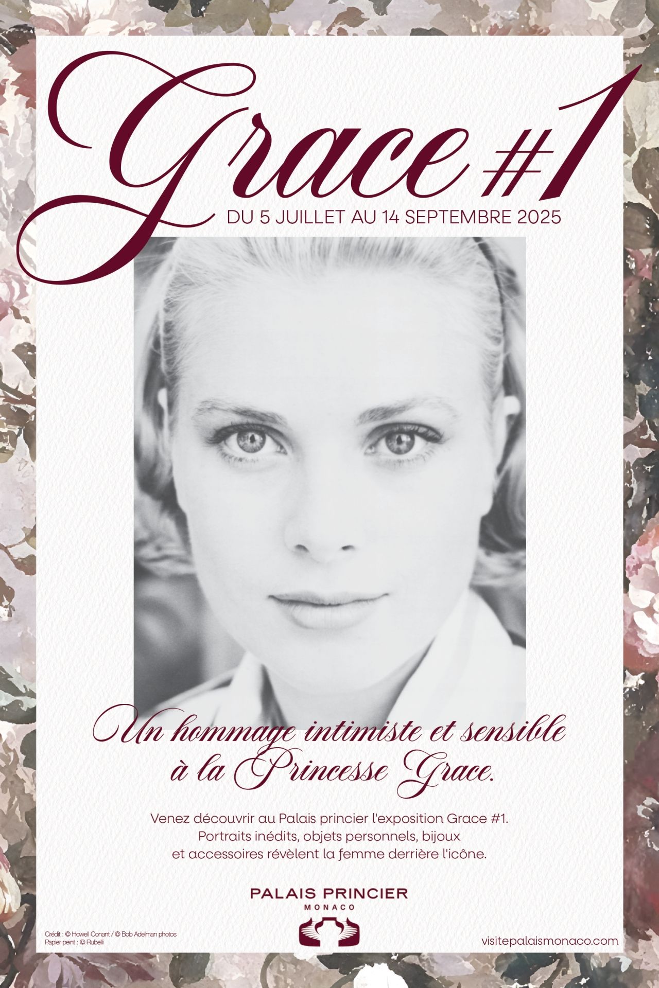 Dal 5 luglio al 14 settembre 2025 l’esposizione si estende su 90 m² distribuiti in tre sale. Attinge principalmente alle collezioni e agli archivi del Palazzo. Il comunicato ufficiale racconta: “Questa mostra offre un approccio intimo, lontano da cliché e rappresentazioni stereotipate, per rivelare la donna dietro l’icona: le sue sfumature, le sue emozioni, la sua forza silenziosa… Si articola intorno a quattro temi che riflettono le molteplici sfaccettature di Grace: la giovane donna naturale, immortalata sulle spiagge della Giamaica; la donna di tutti i giorni, elegante e discreta; la madre amorevole e attenta; e infine la fotografa e regista amatoriale, desiderosa di preservare i ricordi e i momenti preziosi della sua vita familiare”.