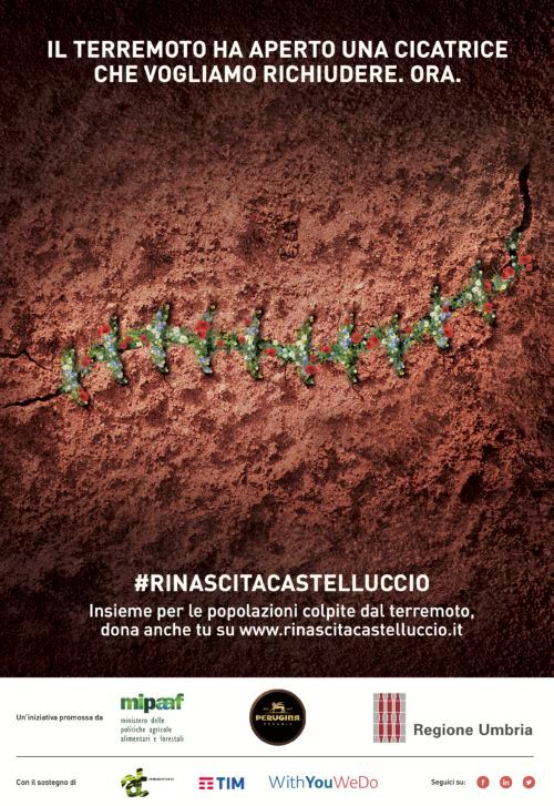 Una cicatrice che però è anche uno spazio vuoto, una possibilità, una via da percorrere. Perché ogni ferita può essere lenita ritrovando il bello. E per Castelluccio i fiori sono proprio il simbolo della sua unicità e della sua eccellenza, ed è da qui che parte il progetto #RinascitaCastelluccio, dalla sua ferita nel terreno e dai suoi fiori che faranno da guida nella ricostruzione. La comunicazione e il concept dell’intero progetto sono nati con la collaborazione e il supporto di Armando Testa, agenzia che da anni affianca il marchio Perugina.