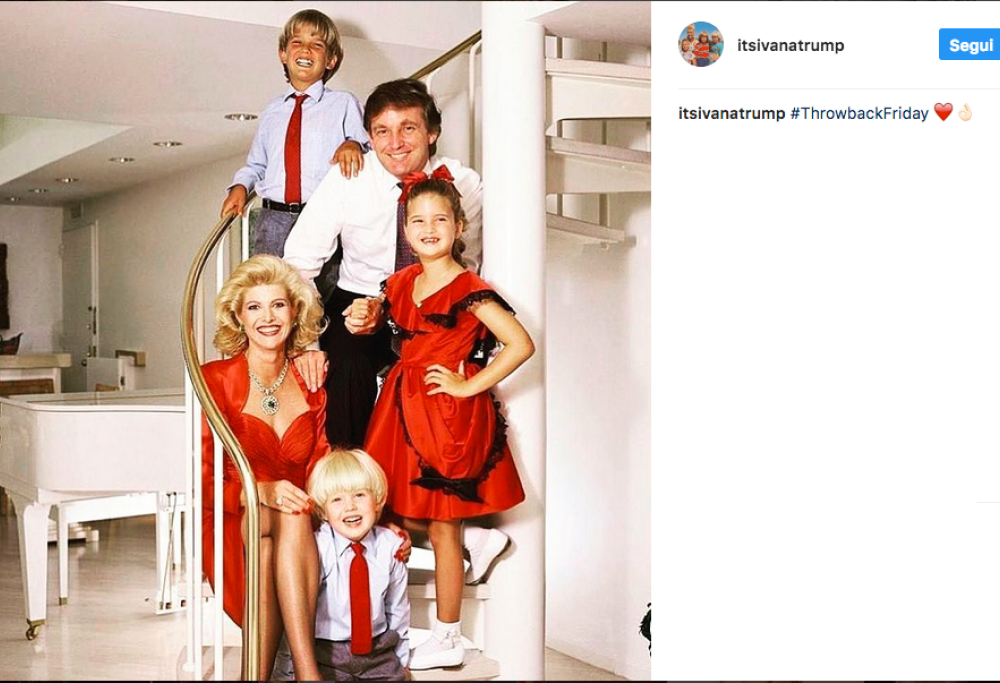 In foto, un’immagine di Ivana e Donald Trump con i piccoli Ivanka, Donald J. jr ed Eric