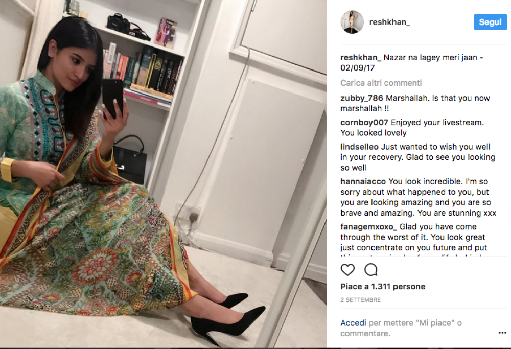 La ragazza ha sofferto molto, sia fisicamente che psicologicamente, ma ha deciso di reagire creando un blog in cui racconta la sua battaglia quotidiana contro il dolore e la depressione. Nel blog, Reshan si fa anche vedere accuratamente truccata, un modo che ha escogitato per superare il trauma. Reshan pubblica le sue foto prima e dopo il trucco, e si è anche detta fortunata, perché molte altre ragazze colpite dall’acido hanno subito danni ben peggiori. Il suo esempio è adesso d’incoraggiamento per molte altre ragazze, che apprezzano la sua capacità di resistere e affrontare positivamente la tragedia che l’ha colpita. Inoltre in Gran Bretagna si è anche creato un movimento d’opinione che, nel nome di Reshan, chiede al governo una legge apposita, che renda meno semplice l’acquisto di acidi e altri prodotti che possono ustionare volti e corpi delle persone.