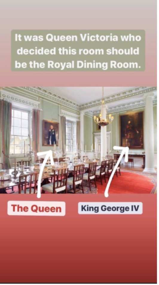La sala da pranzo fu arredata personalmente dalla Regina Vittoria.
