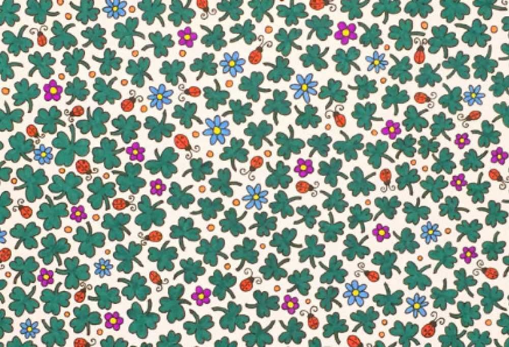 Come in un vero prato, in quest’immagine non è semplice trovare l’unico quadrifoglio rappresentato.