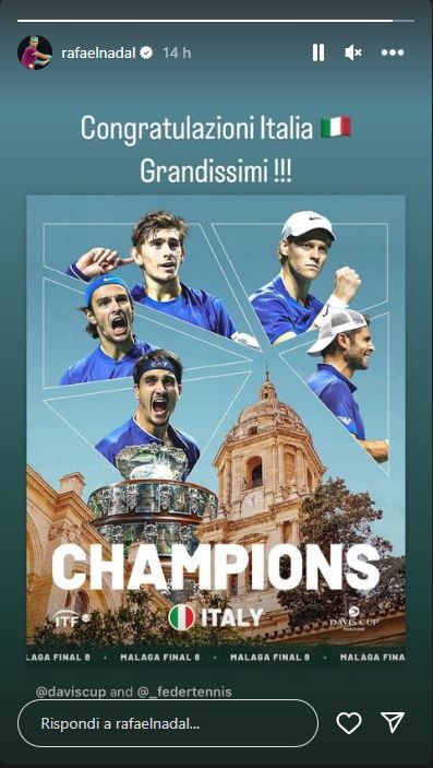 A cominciare dal campione di tennis Rafael Nadal che su Instagram ha scritto: “Congratulazioni Italia, grandissimi!!!”.