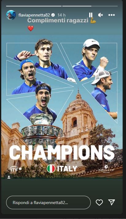 A fare i complimenti via social alla squadra italiana, composta da Jannik Sinner, Lorenzo Musetti, Lorenzo Sonego, Matteo Arnaldi e Simone Bolelli, guidati dal capitano non giocatore Filippo Volandri, sono stati in tanti.