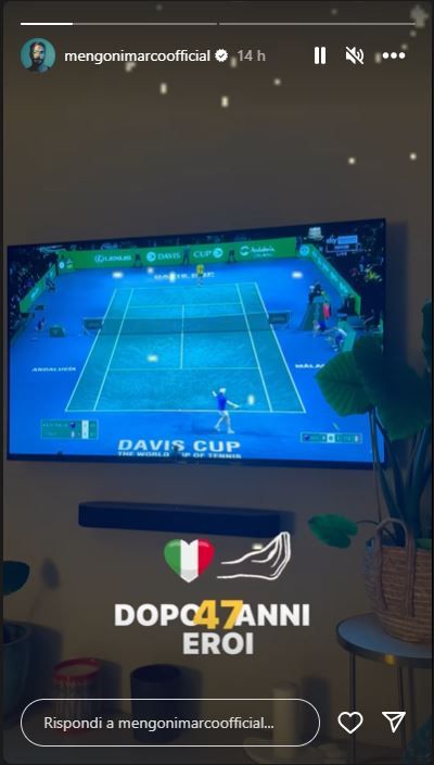 Marco Mengoni, grande appassionato di tennis, ha seguito i match e si è entusiasmato per la vittoria.