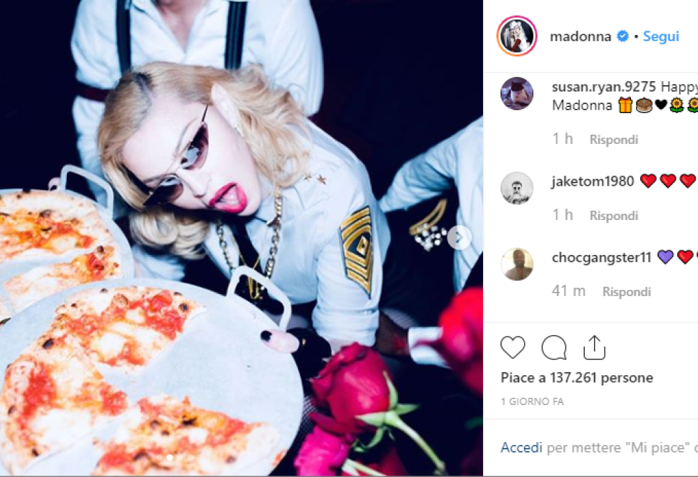 Madonna festeggia il compleanno con pizza e pasta cacio e pepe