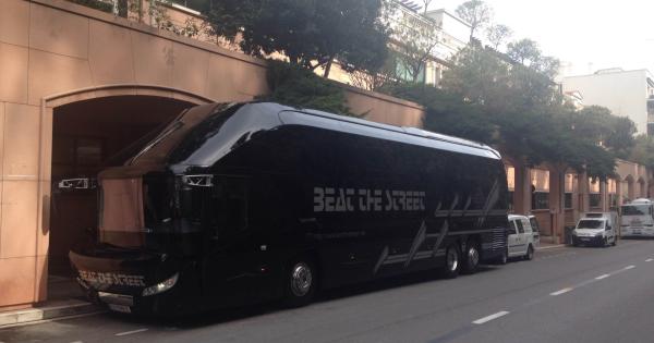 Ecco l'enorme motorhome parcheggiato da 3 settimane dietro la sede di Radio Monte Carlo nel Principato di Monaco.