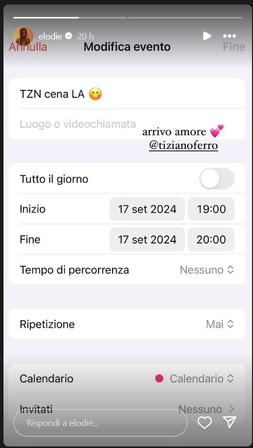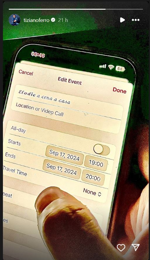 Tiziano ferro ha mostrato ai fan un appuntamento per il 17 settembre con Elodie.