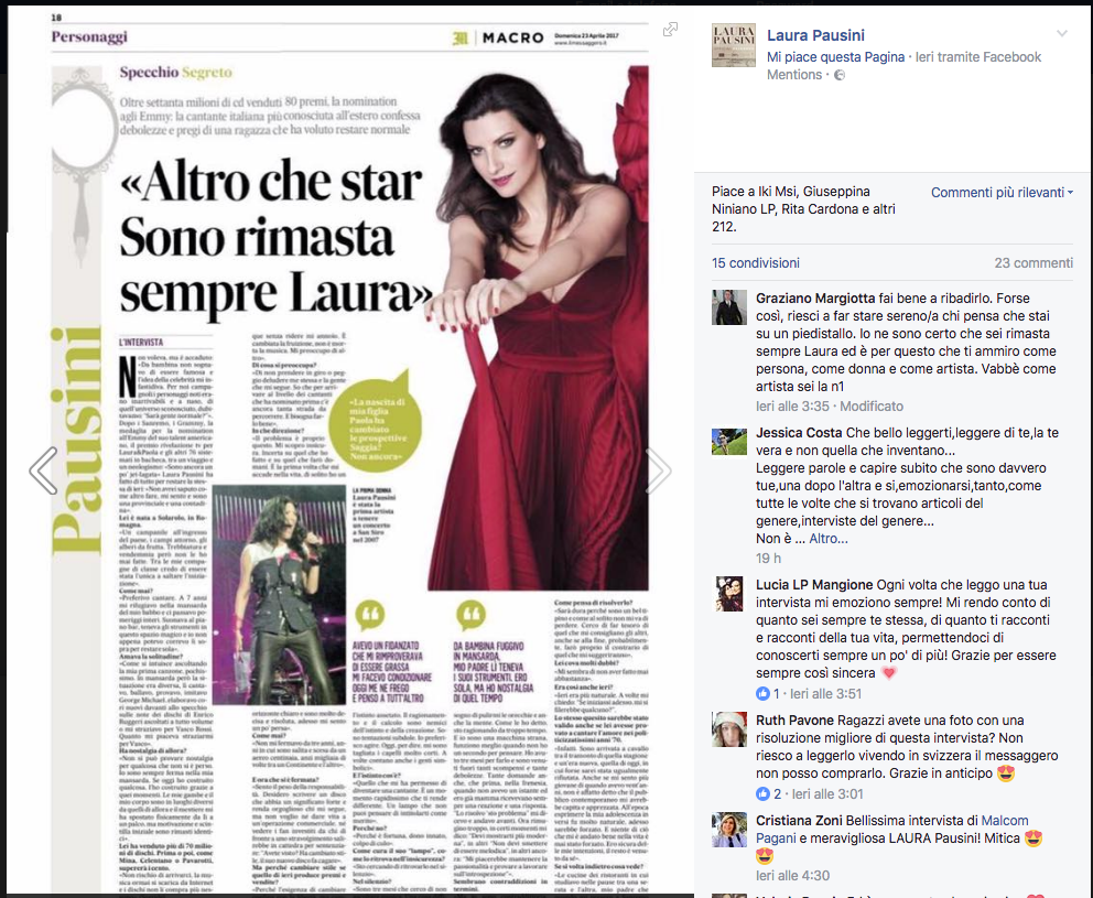 Nell'intervista, la Pausini dichiara: «Mi scopro insicura, incerta su quel che ho fatto e su quel che farò domani. È la prima volta che mi succede nella vita, di solito ho un orizzonte chiaro e sono molto decisa e risoluta, adesso mi sento un po' persa». Si tratta di pensare al nuovo album, e dunque le riflessioni si susseguono: «Non mi fermavo da tre anni, anni in cui sono salita e scesa da un aereo centinaia, anzi migliaia di volte tra un Continente e l'altro. Sento il peso della responsabilità. Desidero scrivere un disco che abbia un significato forte e renda orgoglioso chi mi segue, ma non voglio né dare vita a un'operazione commerciale, né vedere i fan investiti da chi di fronte a uno stravolgimento salirebbe in cattedra per sentenziare: 'Avete visto? Ha cambiato stile, il suo nuovo disco fa cagare... Sono tre mesi che cerco di non ascoltare musica, [...] ho bisogno di pulirmi le orecchie e anche la mente... In certi momenti mi dico: "Devi mostrarti più moderna", in altri "Non devi smettere di essere melodica", in altri ancora: 'Mi piacerebbe mantenere la passionalità e provare a lavorare sull'introspezione"».